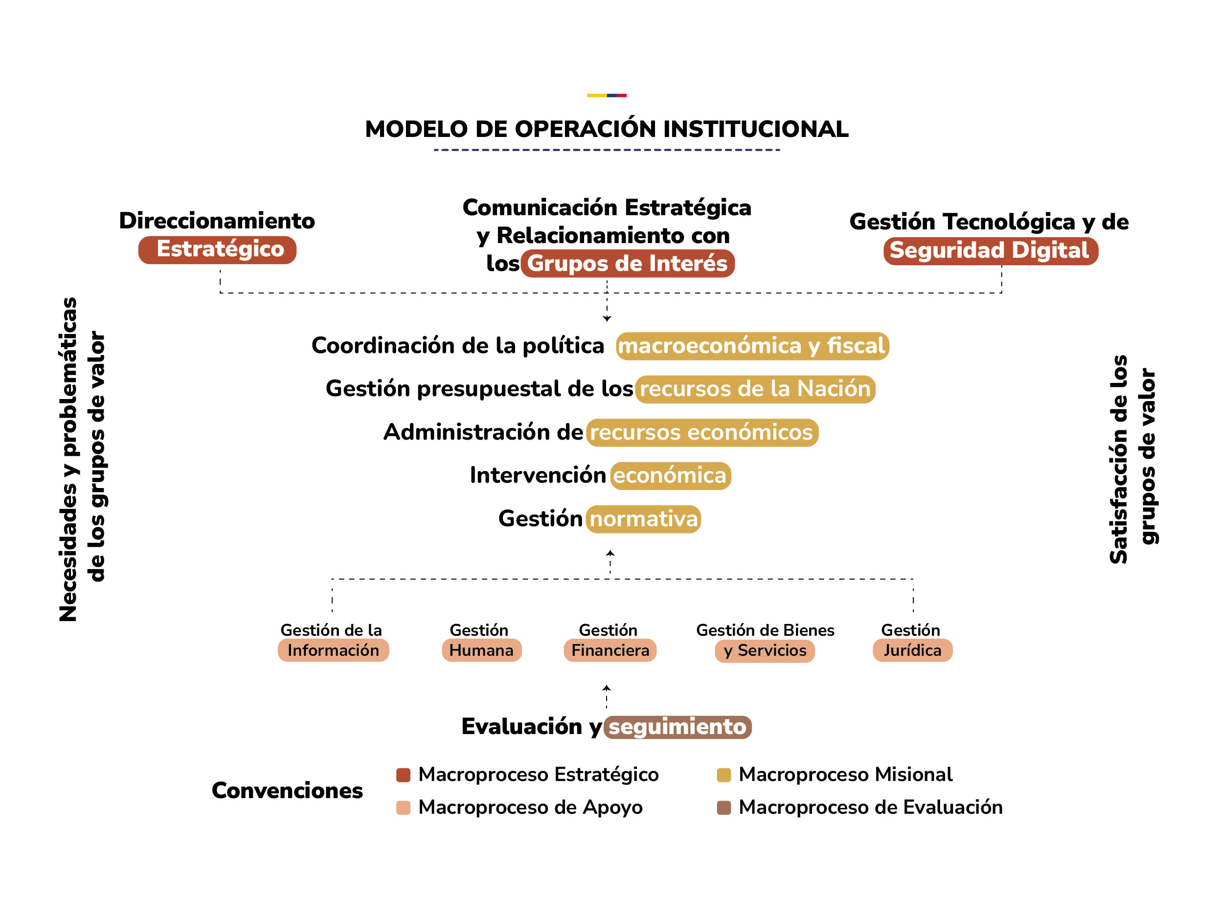 El Ministerio cuenta con 43 procesos agrupados en 14 macroprocesos, a continuación, se presenta la estructura de procesos de la entidad.
