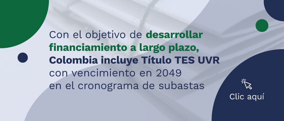 Con el objetivo de desarrollar financiamiento a largo plazo, Colombia incluye Título TES UVR con vencimiento en 2049 en el cronograma de subastas