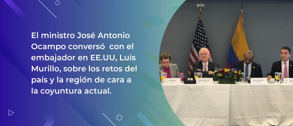 El ministro José Antonio Ocampo inició su agenda de este miércoles con el embajador en EE.UU, Luis G Murillo, y Adrienne Arsht, del Atlantic Council, para discutir los retos y oportunidades del país y la región de cara a la coyuntura actual.
